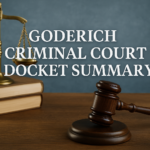 - Brak, Campbell, Cheyne, Grant, Daniels-Bobiwash, Morrison, Sharman, Elliott & Lovelace on Packed Goderich Criminal Docket🏛 Goderich Court – Criminal Matters (Oct 3, 2025) 10:00 AM – Bail Phase / Hearings (Video unless noted) 10:00 AM – Set Date for Trial (Video) 10:00 AM – Trials (In Person) 11:00 AM – Pleas (In Person, Courtroom 2) 2:15 PM – Plea (In Person, Courtroom… Read more: Brak, Campbell, Cheyne, Grant, Daniels-Bobiwash, Morrison, Sharman, Elliott & Lovelace on Packed Goderich Criminal Docket
