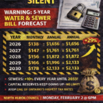 - North Huron Households Facing Steep Water & Sewer Hikes — Real Bills Show the True Cost(Wingham, North Huron) — A current North Huron water and sewer bill confirms what many residents have suspected: utility costs are already high — and set to climb steadily for years, with no protection for ratepayers. The bill, dated December 2025, shows an in-town residential household currently paying… Read more: North Huron Households Facing Steep Water & Sewer Hikes — Real Bills Show the True Cost
