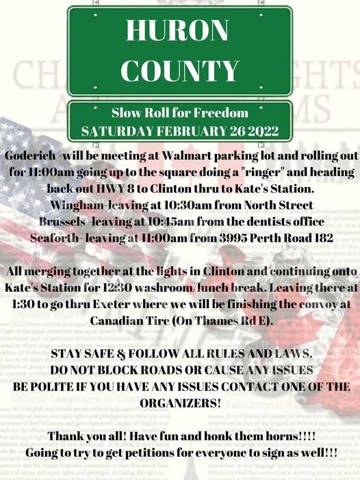 To be clear, virtually every person in Ottawa was there to “demonstrate” to Canada & the world that our governments don’t care about our Rights and will do virtually anything to avoid answering a question or two. Those living in North Huron have been keenly aware of those facts for quite some time. These Demonstrators accomplished their mission and video documented countless beatings and 100+ police “SHOW ME YOUR PAPERS” checkpoints across the city. Mission accomplished on an international level!