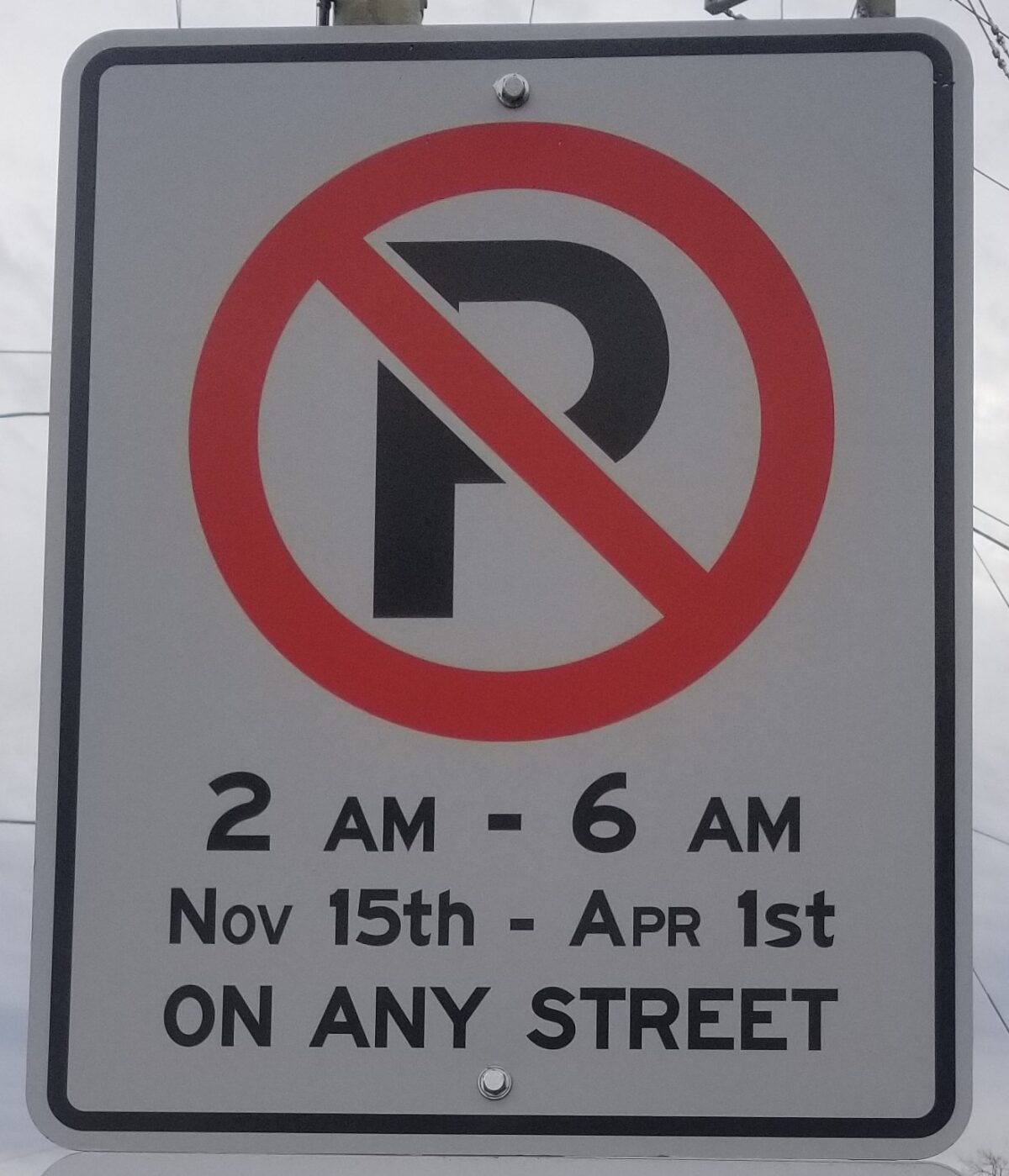 Goderich – Overnight parking is prohibited between the hours of 2:00 a.m. and 7:00 a.m. from November 15 to March 15.
