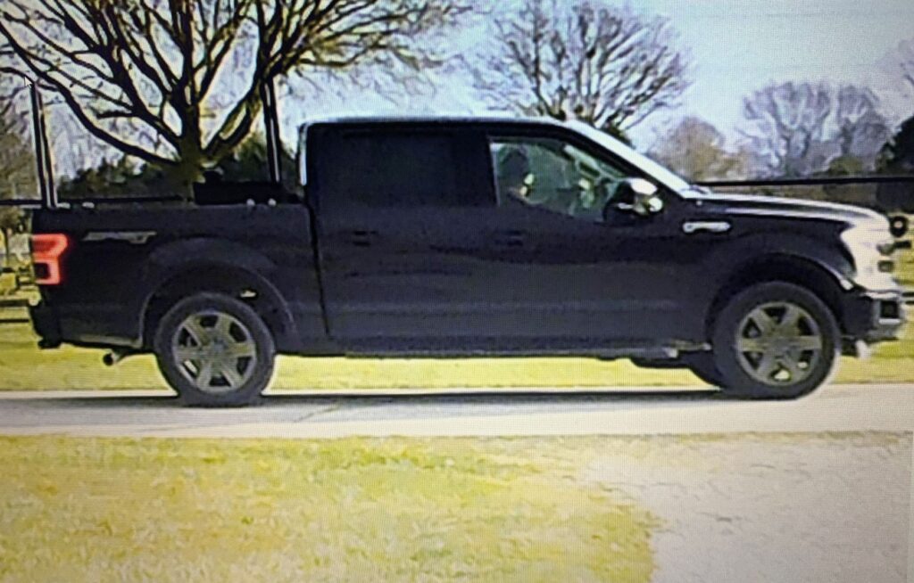The suspect was caught on security camera footage entering a window of a home. Upon the alarm sounding, the suspect fled the scene in a distinct looking black newer model Ford F150 pick-up truck with open box that contained a tool box and ladder racks.