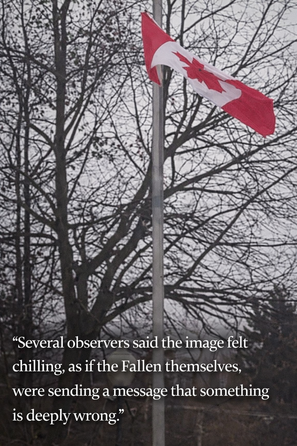 The cenotaph is not decorative street furniture. It is sacred ground — a memorial to Canadians who served, suffered, and died under that flag. Allowing it to fly upside down due to inaction is not merely sloppy maintenance; it is institutional disrespect.