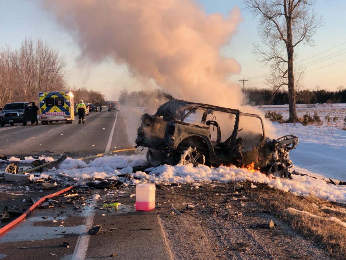 (Middlesex Centre) – On March 3, 2021, at 1:03 a.m., members of the Middlesex County Ontario Provincial Police located a single motor vehicle in the ditch on Highbury Avenue at Nine Mile Road, Middlesex Centre Township.